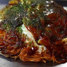 広島風お好み焼きと、豚の卵とじみたいなものを食べました。