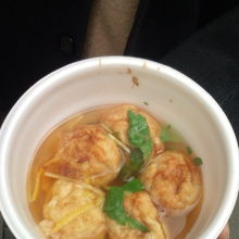 ちゃぷちゃぷをいただきました。たこ焼きがだし汁の中に浸っているもので初めて食べるものでした。べちょべちょになるのでは?と思っていましたが、意外とたこ焼きがだしを吸ってジューシーでおいしかったです。ゆずの風味が生きています!