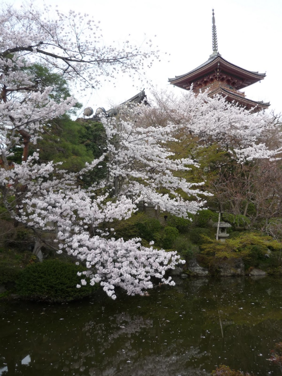 春の清水寺もきれいです.まだ緑が多くない時期,桜の淡い色が景色にそっと溶け込んできれいです.桜が主張しすぎないところがいいです.