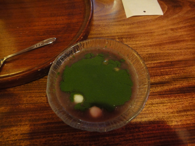 夏でもクーラーを入れず、扇風機のみがまわっています。席に着いてすぐは確かに暑いのですが、シャリシャリのかき氷や冷たいお汁粉を楽しんでいるうちに自然と涼しくなっていきます。冷やし宇治しるこを注文しましたが、さらさらと甘いあんにどろっと苦みのある抹茶がとけ、さわやかな味でした。
