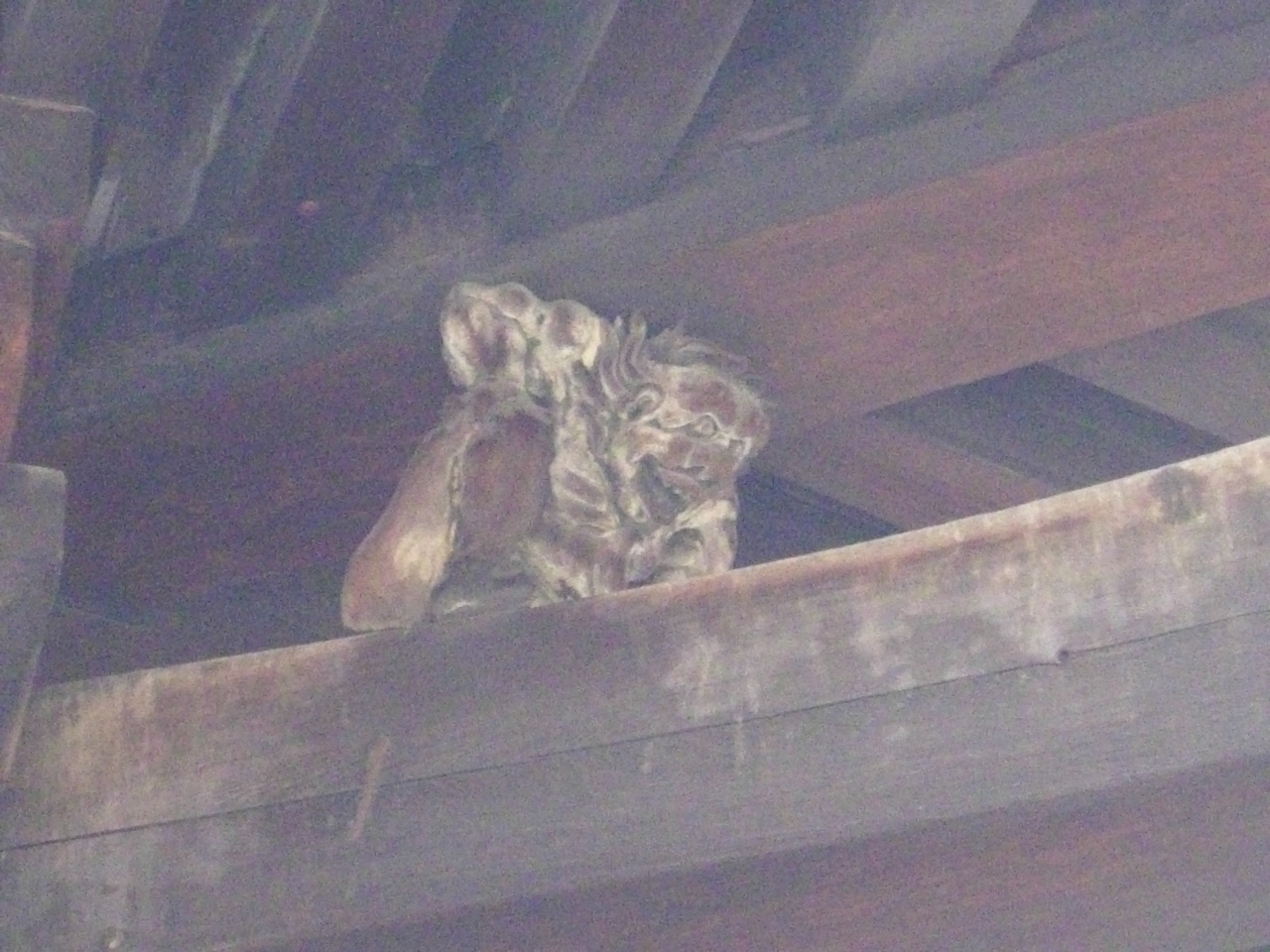 五重塔では面白い彫り物が屋根を支えて居るので、