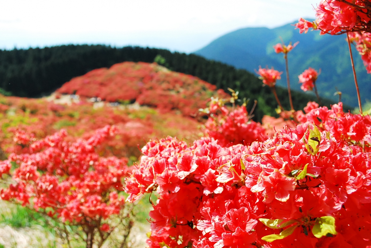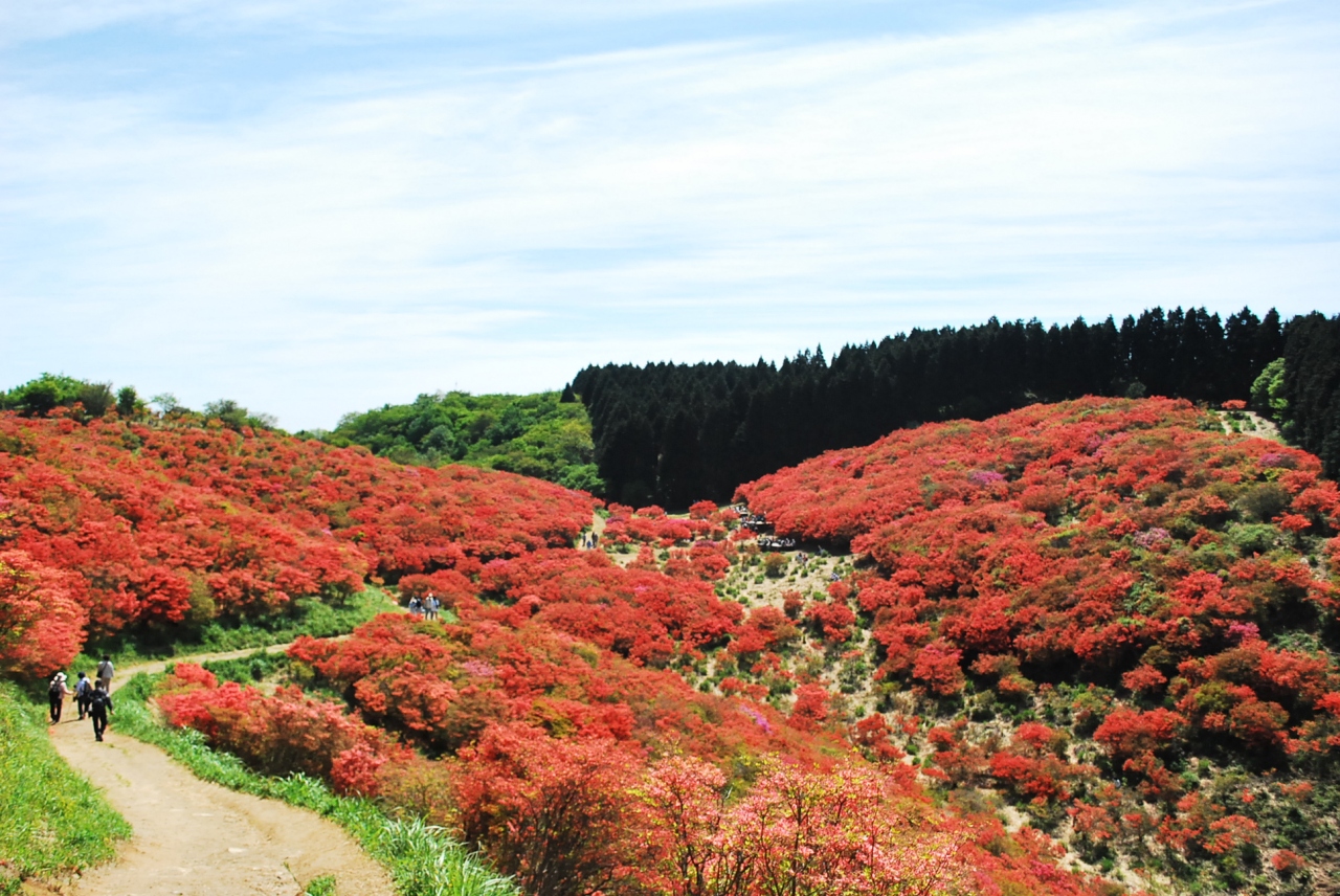 一目百万本のツツジといわれる通りツツジの季節は、山が赤一色に染まります。