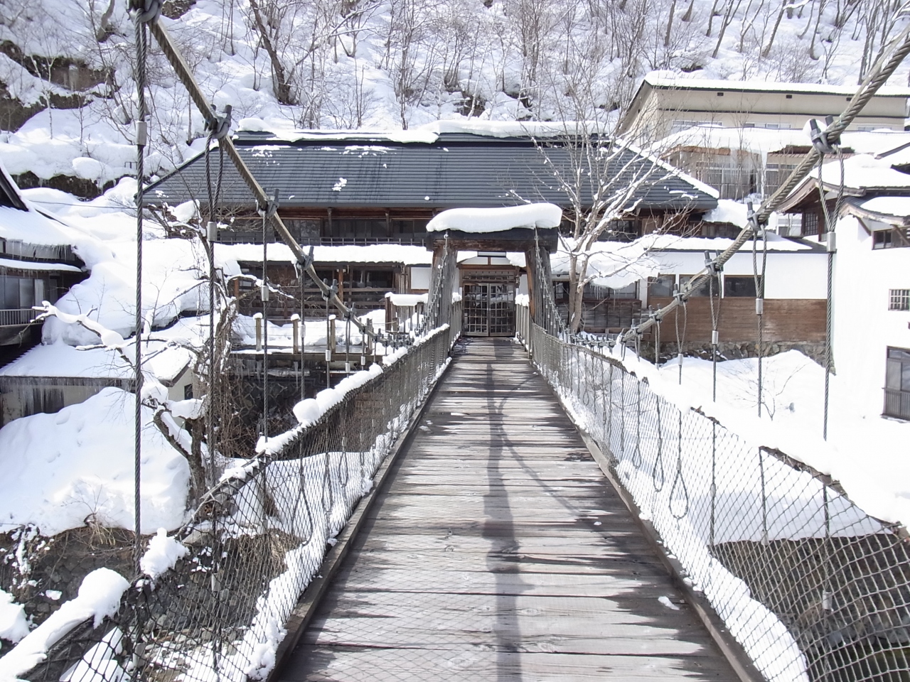 一面まっ白のダムを越えたところにある宝川温泉。