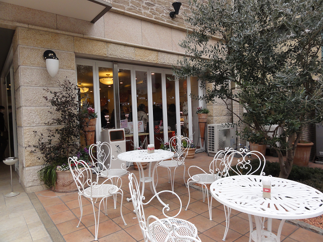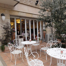 ケーキ屋さんの雰囲気ですが、商品はコンビニ用スィーツの訳あり品や、カステラの端が詰まった袋等、市価より格安で売られてました。食べてしまえば同じ味と、つい余分に買ってしまいそうで注意が必要です。外の席では購入したものも食べられます。