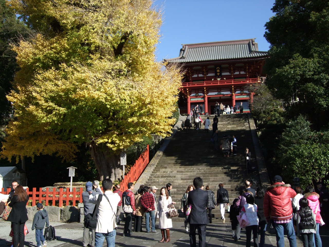 鶴岡八幡宮といえば、大イチョウ。それなのに、雪まじりの大風が吹いて、根こそぎ倒れてしまったのですね。これは、2009年の写真。公暁が、叔父、実朝をこのイチョウに隠れて、襲ったことはあまりにも有名です。その頃で、既に大木だったのですから、樹齢は千年はゆうに越えていたでしょう。本当に残念ですね。石段の下から、ここを登り降りする人を眺めると鎌倉にやってきたという感じだったのですが。しかし、そうなると、私的にはお勧めは、舞殿でしょうか。頼朝に命ぜられ、静御前が義経を思いながら、舞を舞ったという建物。その時、静御前は身ごもっていたともいいます。さぞかし、あわれを誘ったことかと思います。