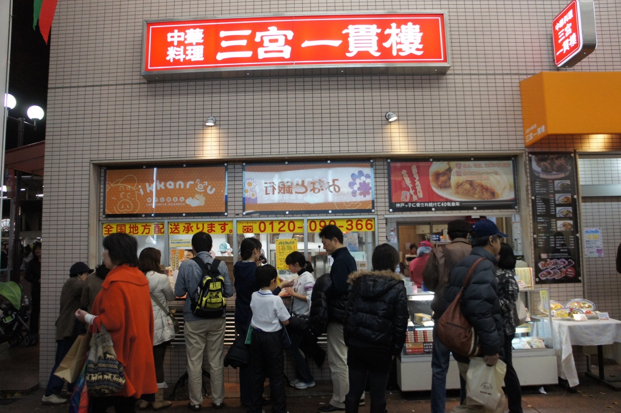 三宮一貫楼本店は、阪急三宮駅から大丸に向かって少し歩いたところ。商店街の入り口といった場所になります。ここは、豚マンの人気店。この日も、店頭はお客さんがひっきりなし。さて、目当ての豚マンの方ですが、これはまさしく私好み。豚肉の肉汁を大量のたまねぎの甘みがじゅわっと包んで、優しい味わいが口いっぱいに広がります。何か、手をかけて、ひねった味になった豚マンも多いと思いますが、ここのはストレートに豚マンのおいしさを表現している感じ。これだけ素直な味わいはあるようでなかなかないのではと思います。