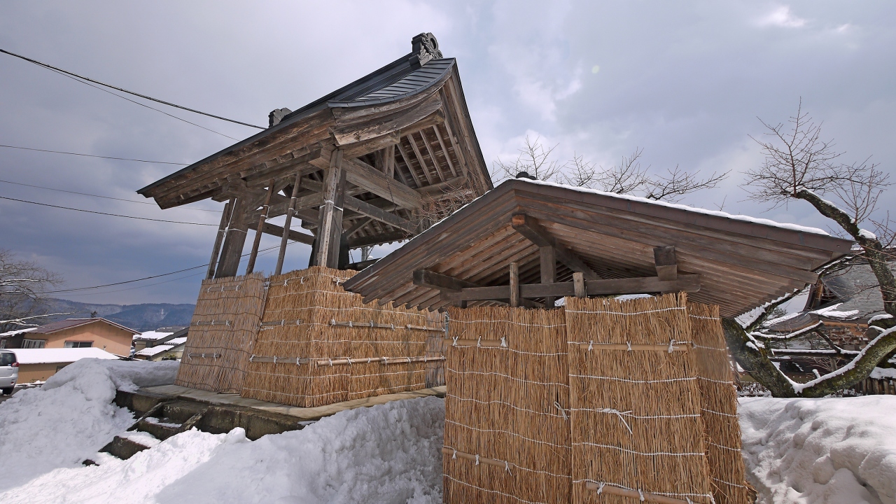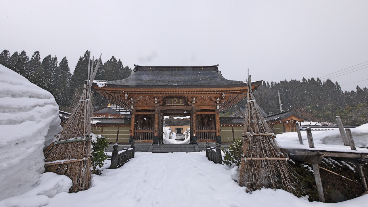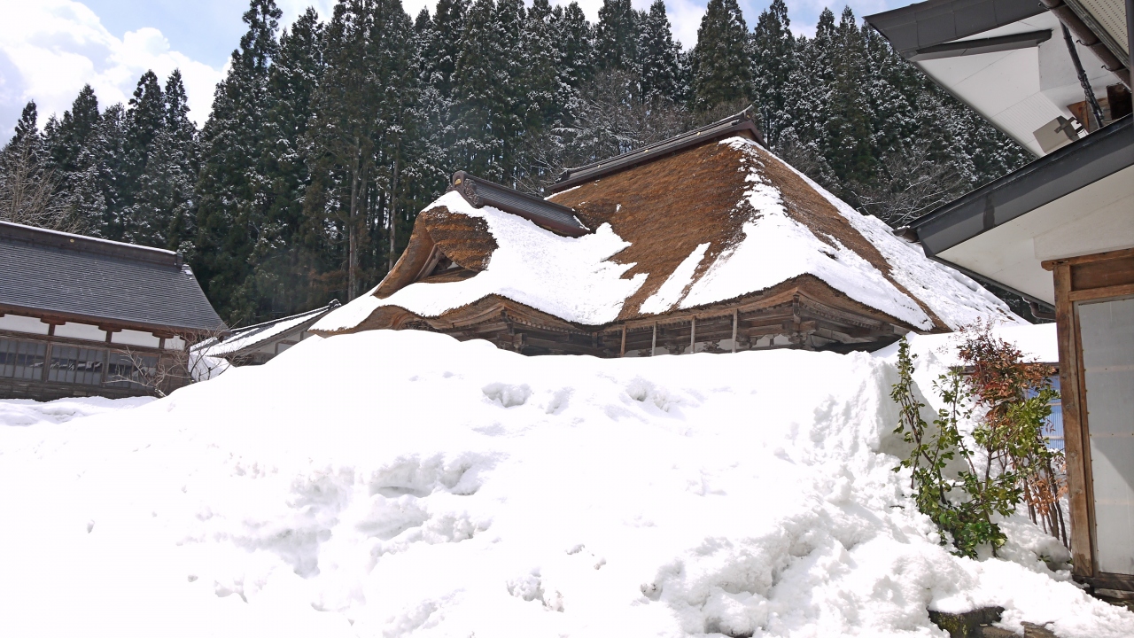 2010年10月にもブログを書いたが,大雪の中,かやぶき屋根を守るのは大変だろう.外から拝観だけでも,冬の矢島に来たら見に行くといい.高台なので車のほうが便利.駐車場もある.生駒家の菩提寺として風格がある.