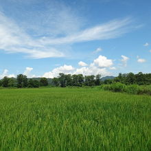 安曇野へ家族で訪れたのはもう二度目ですが、とても清々しい場所です!真夏の暑さはあるものの、山と川、せせらぎという言葉が良く似合う場所。場所によっては建物がなく、都心から向かう人にとっては何もないという景色がとても美しく見えます。NHKの「おひさま」の舞台ともなりました。