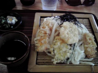讃岐うどんの中でも、腰の強いうどんのお店を求めて色々と食べ歩きましたが、このお店のうどんの腰の強さは普通でした。 野菜天ざるが500円以下で食べられるとメニューに書いてあって、それにまず驚き! 高松以外だと、天ざるうどん(そば)は1000円を超えるのが普通だと思うので。 注文したら、冷たいざるうどんの上に直接天ぷらが載ってて、ちょっとウケましたが、味はなかなか美味しかったです。