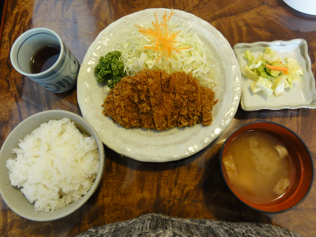 どこかで豚カツ食べたいと偶然見つけたお店です。店前の駐車スペースは3台ですから、ご近所さんが来るお店かもしれません。店内は広かったのですが、土曜の11時半でお客は私達だけでした。