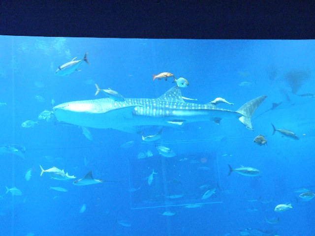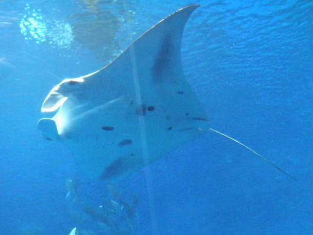 なんといっても、メインはジンベイザメやマンタが泳ぐ大水槽。半トンネル状になっている場所があり、魚たちを下から眺めることができます。