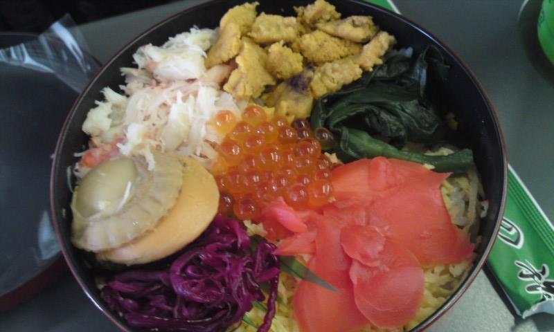 旭川駅で、旭川駅名物の駅弁「蝦夷わっぱ」を買いました!1度、北海道物産展で食べて以来のファンだったので、今回は地元でgetできラッキーでした。蒸しうに、かに、ホタテといかにも北海道らしいラインナップでおいしいですよ!