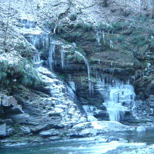 氷柱は大きなものが2つあり、手前のものは自然に出来た氷柱。奥のものは人が崖に水を掛けて作った氷柱です。2つを見比べると、違いは一目瞭然。自然のもののほうが圧倒的に美しいです。でも、2つを見比べられて面白かったです。