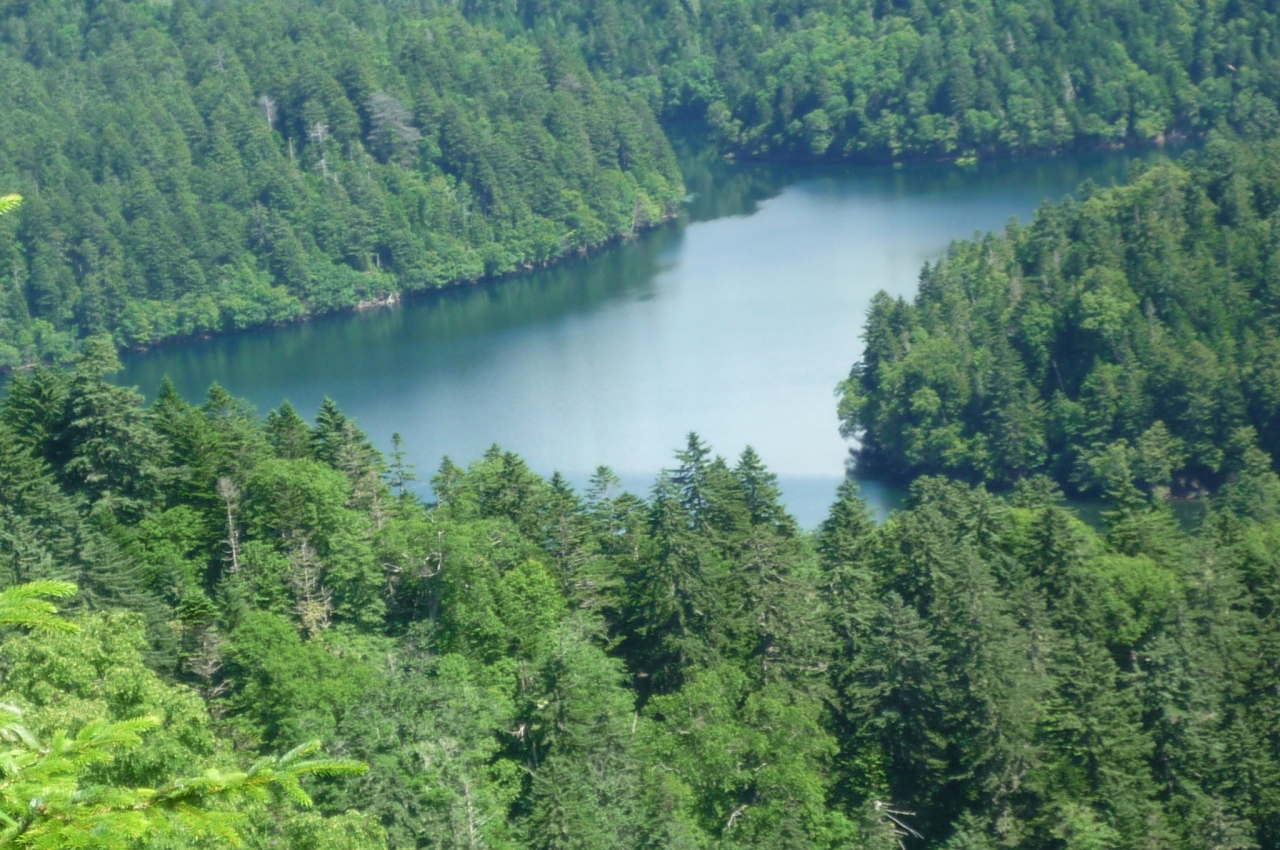 阿寒と弟子屈の間の深い深い森の中にあります。駐車場への坂道を車で上がると看板があり遠くに小さな湖が見えます。なんとか北海道の形に見えない事もないですが・・・。