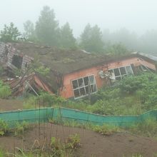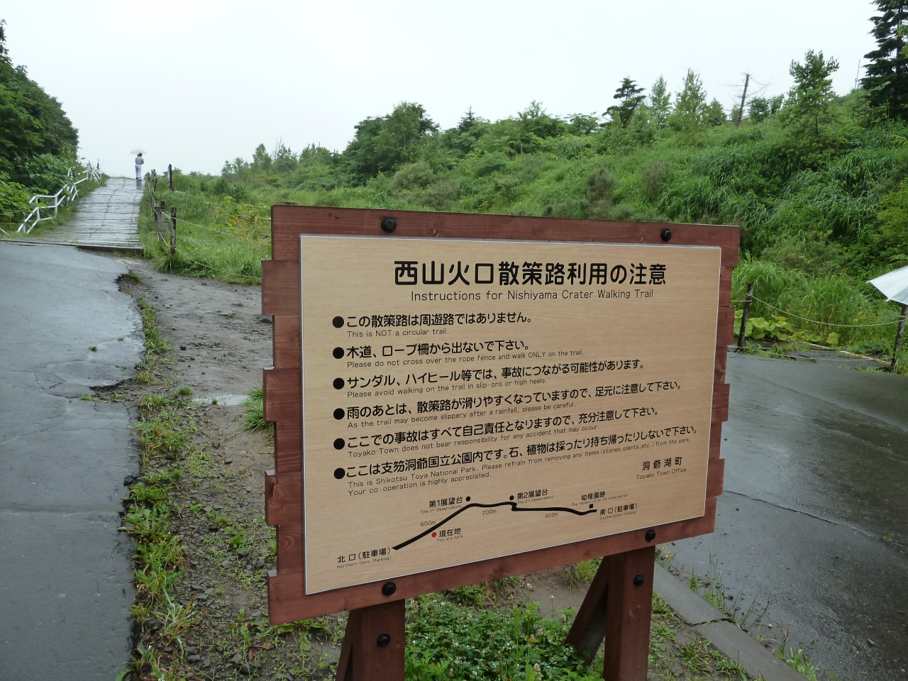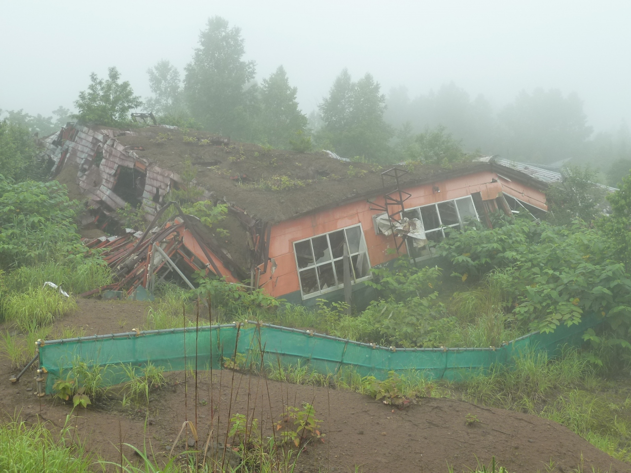 北口の駐車場から上がってみました。ココは有珠山噴火で被害を受けた地域をそのまま残してある場所です。めくれ上がったアスファルトの道路、折れた電柱、破壊された民家などそのまま残っています。本来下り坂の道が上り坂に変わっていたり火山の威力を感じられる場所です。近くまで行ったらよってみる価値はあると思います。でも足元の悪い場所ばかりなので注意しないといけないですけどね。