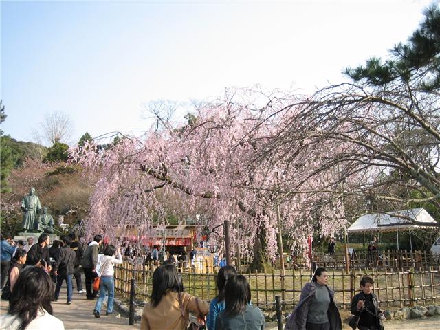 京都も広いもので、西の方とは違って、このエリアは桜がほぼ満開でした。かなり大勢の花見客がいて賑わっていました。所々に立派な桜の木があって、とても綺麗でした。