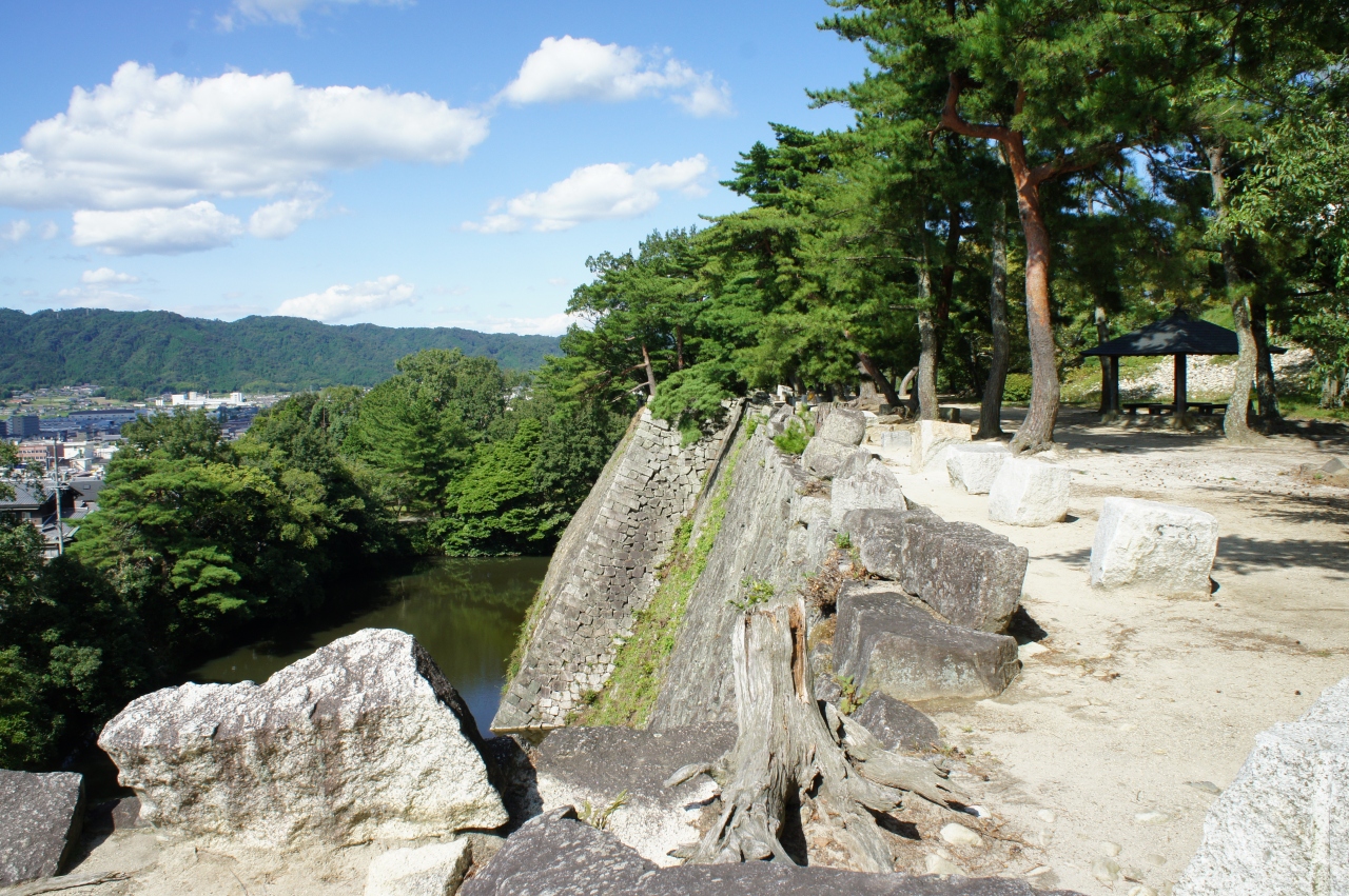 高さ 約30メートルという高石垣など、実戦的な規模。写真は、その石垣ですが、さえぎるものもなく、よく考えるとかなり危険です。なお、現在の天守閣は、昭和10年に完成したもの。衆議院議員であった川崎克が私財を投じて建てた模擬天守です。内部には豊臣秀吉から藤堂高虎に拝領され、藤堂家の家宝となった黒漆塗唐冠形兜など、藤堂家ゆかりの品々や伊賀焼、芭蕉の使用していた机もありました。かなり充実しています。
