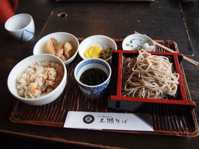 JR佐賀駅にある観光案内で教えていただき、三瀬のそば街道へ行きました。夕方5時近く佐賀駅を車でスタートしたのでそのあたりについた頃には日も暮れかかっていました。このそば街道には数店舗の店があるとパンフレットにはありましたが、到着時間が遅い事もあり閉店している店舗もあり営業しているこちらに即入りました。蕎麦の事もあまりよく分からないのでお勧めの品を選びました。周りのお客さんも同じものを食べている人が多く家族連れやカップルなど人は沢山居ました。味は平均点だと思います。