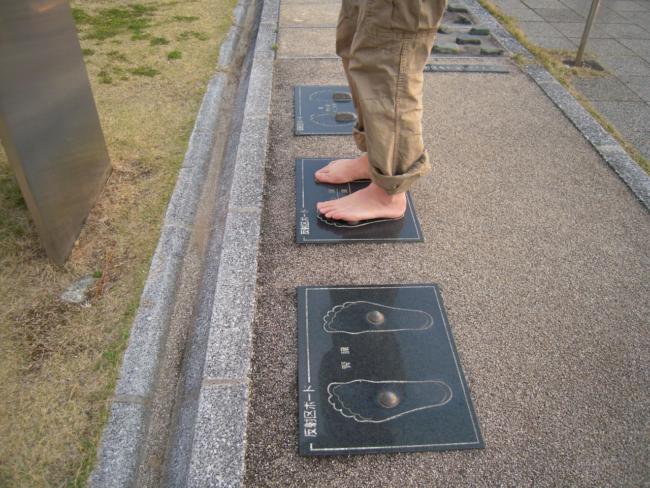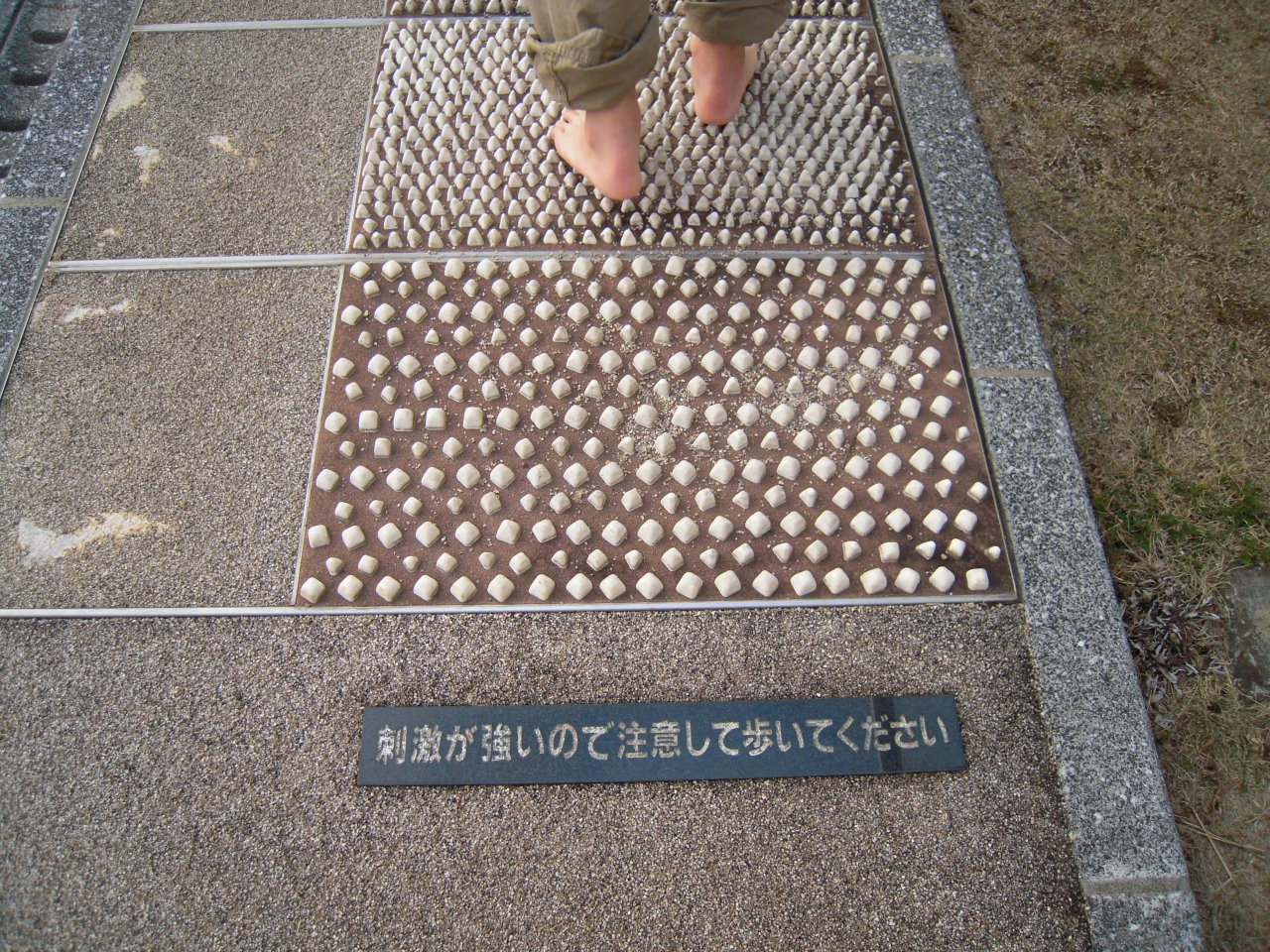 足裏のツボ押し効果バツグンの健康遊歩道がありいろいろな大きさの石が並んでいて健康でないとかなり痛いと思います