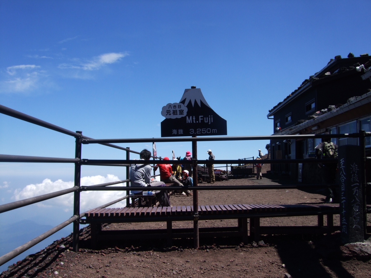 6合目に一泊、頂上に一泊の計二泊しました。4回目の登頂で初めてお鉢回りをしましたが、一部(富士山測候所の手前)は滑ってすごく登りづらいところがありました。8合目あたりから上の景色は絶景です。頂上には日本一高い場所にある郵便局があります。富士山は一般の人は真夏の間しか登山できないので、世界中から人々が押し寄せてものすごく混んでいます。特に頂上付近の急こう配のところは並んで登る感じです。頂上でご来光を拝むために夜登り始める人が多いので、今回は朝ちょっと遅めに登り始めたので途中まではすいていました。いずれにせよ標高が高いので体を慣らしながらゆっくり登ったほうがいいです。頂上付近では老若男女、子供を問わず高山病の症状に悩まされている人がずいます(8合目あたりに高山病を診察してくれる場所があります)。水、食べ物はものすごく高いので、持てるなら最初から持って登ったほうがよいと思います。頂上の山小屋は、男女混合の雑魚寝状態です。自分のスペースは本当に横になるだけ、腕を伸ばすこともできません。また水は貴重なので、朝歯を磨きたい場合は自前の水を使うことになります。夜?19:00にはむりやり消灯になりますが、外は明るいですしそう簡単に寝ることはできませんでした。また高山病の症状もでて全く寝付くことができず、ちょっとつらかったですが、翌朝は回復。ご来光を拝むことができました。