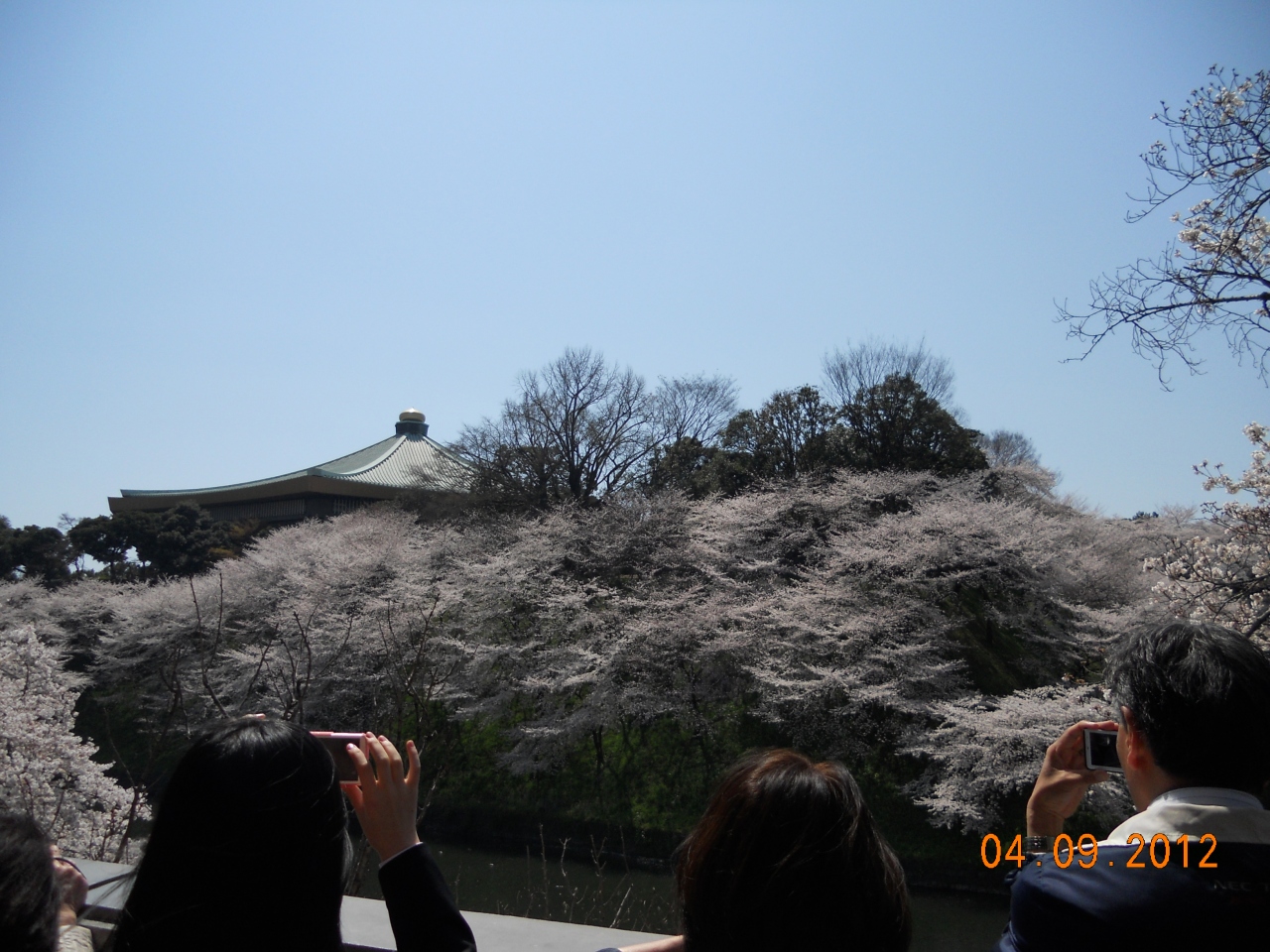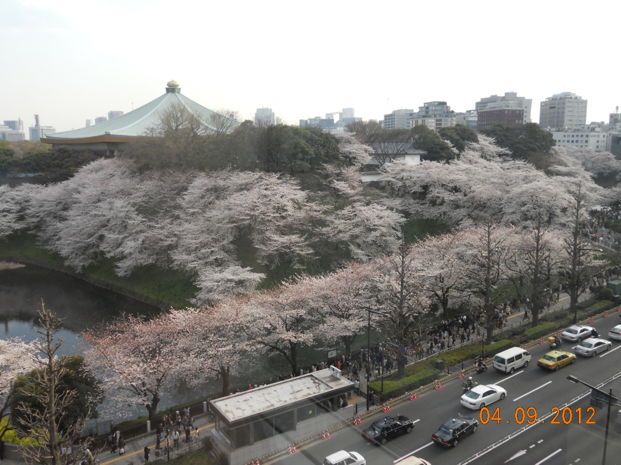 私が1番好きな風景は、満開の桜の木々の後ろに日本武道館のエメラルドグリーンの屋根と金色のたまねぎがちょっとだけ見える角度です。 昭和館あたりからだと、良い写真が撮れます。