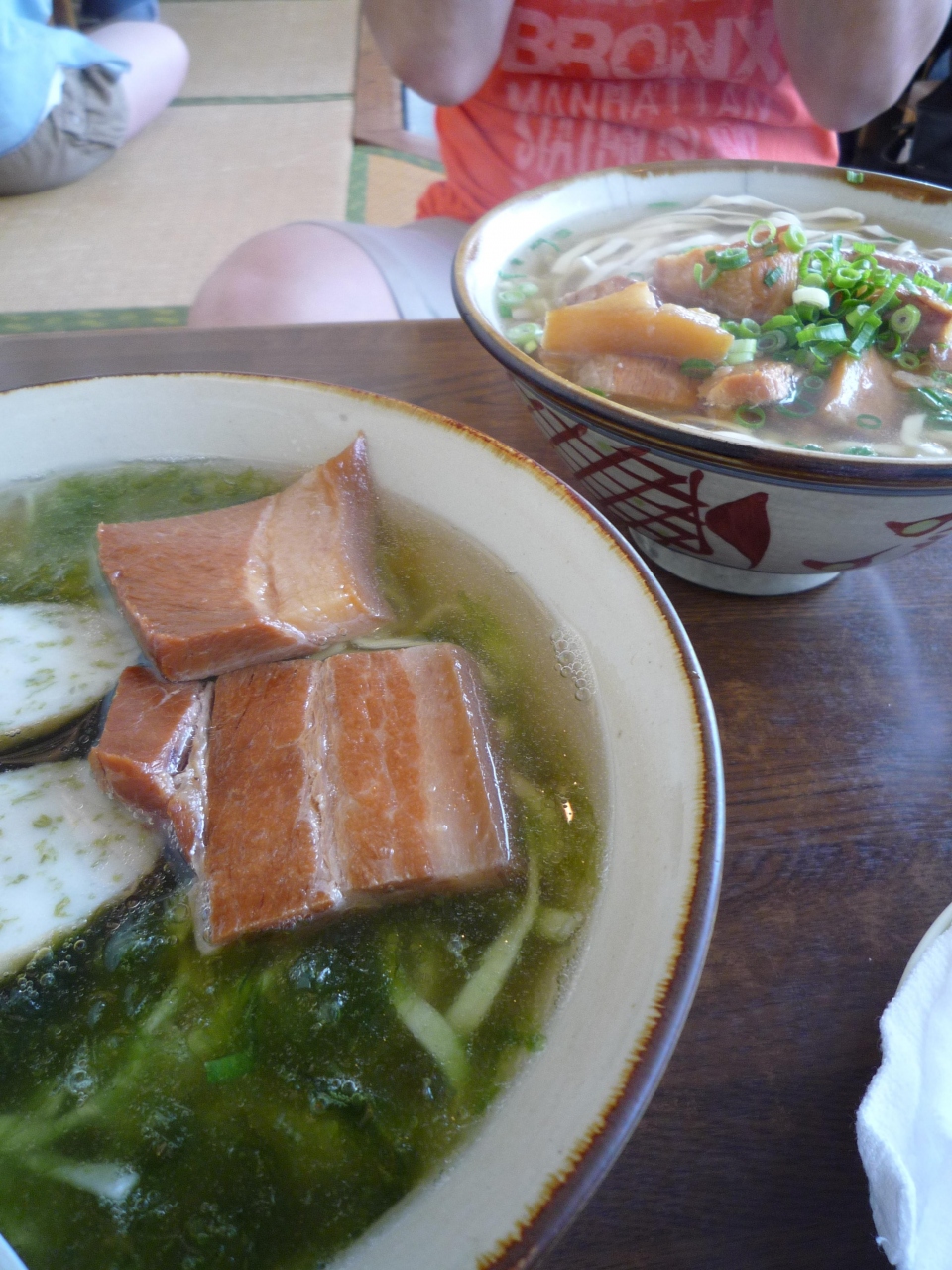 アーサーそばは、普通の沖縄そばのなかむらそばよりもツルツル感がありました。食べ比べると面白いです。