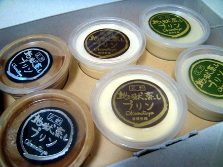 明礬温泉の岡本屋のプリンは有名です。