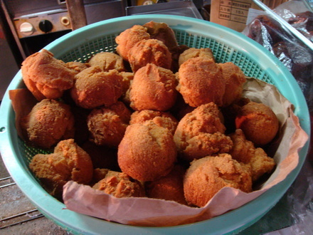 お砂糖多目の球状のドーナツですね、サクサクの食感で中はシットリ、大好きなお菓子です。
