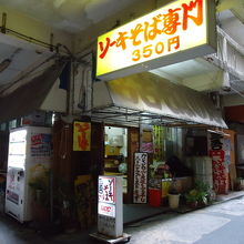 牧志公設市場の裏路地を歩いていると目に入ったソーキそば350円の看板。