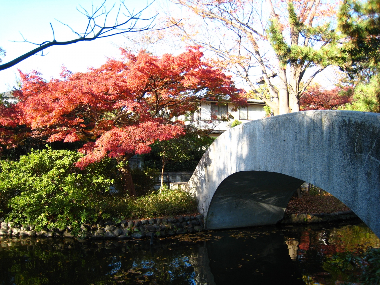 石橋がかかるところに、とても立派なもみじがあります。