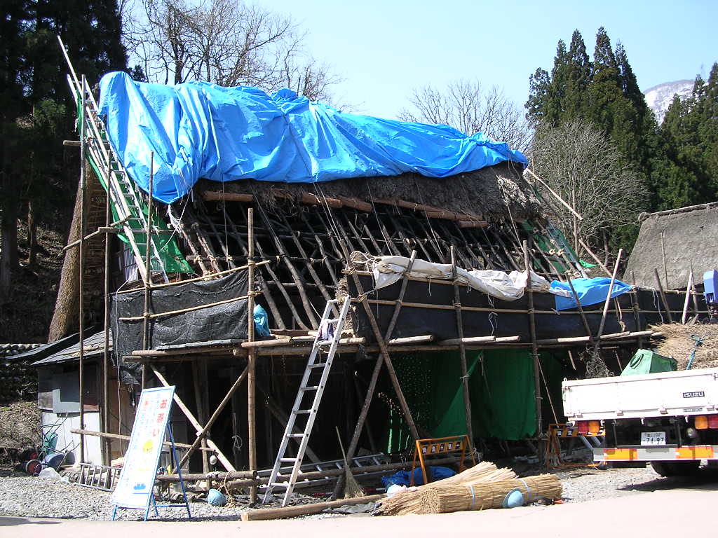 ちょうど萱の吹き直しをしている建屋があり、勉強になりました。
