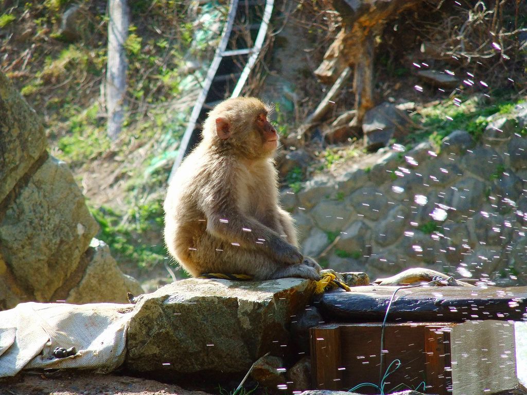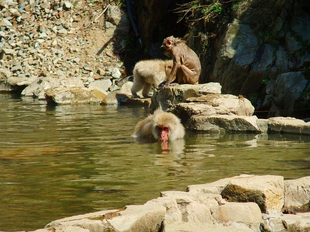 猿が露天風呂に浸かる姿が珍しい事で有名な公苑ですが,暖かい日(季節)は,殆ど浸かりません。 浸かる姿をご覧になりたい方は,寒い季節にどうぞ。