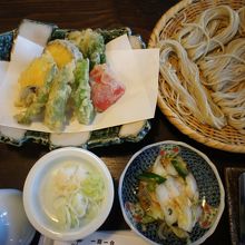 戸隠神社中社のすぐ脇。天然記念物の三本の大杉の一つの陰に構えたお店です。10時の開店ですが、開店前から、受付リストに名前を書いて待つ客も大勢いて、さすが戸隠で一番人気の店だけのことはあります。そばのうまさは、喉越しのうまさに、歯ごたえのある弾力もあって、深い味わい。これだけでも、何か別次元のような感じがしますが、これと合わせて、天ぷらも絶品。サクサクっとした仕上がりに、季節の野菜のおいしさをギュッと詰め込んだような天ぷらは、これも今まで食べたことがない味わいでした。
