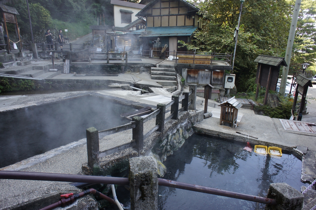野沢温泉の歴史は、鎌倉時代中期まで遡ります。麻釜はその中心部にあって、天然記念物。「おがま」と読みます。麻釜の名前は、この湯に麻を浸して皮をむいたことから。泉質は弱アルカリ性硫黄泉で、温度は90度以上。大釜、茹釜、円釜など複数のの湧出口を持ち、湧出量は、毎分約500リットルもあって、野菜や山菜をゆでる光景が知られています。ただ、高温で危険なためでしょうか、それができる人は近所の人だけ。観光客は、立ち入り禁止です。なお、この日は、朝8時ころから、そんな光景を待っていたのですが、残念ながら、お目にかかれず。お昼前ごろに、チャンスがあると言われたのですが、また今度ということになりました。