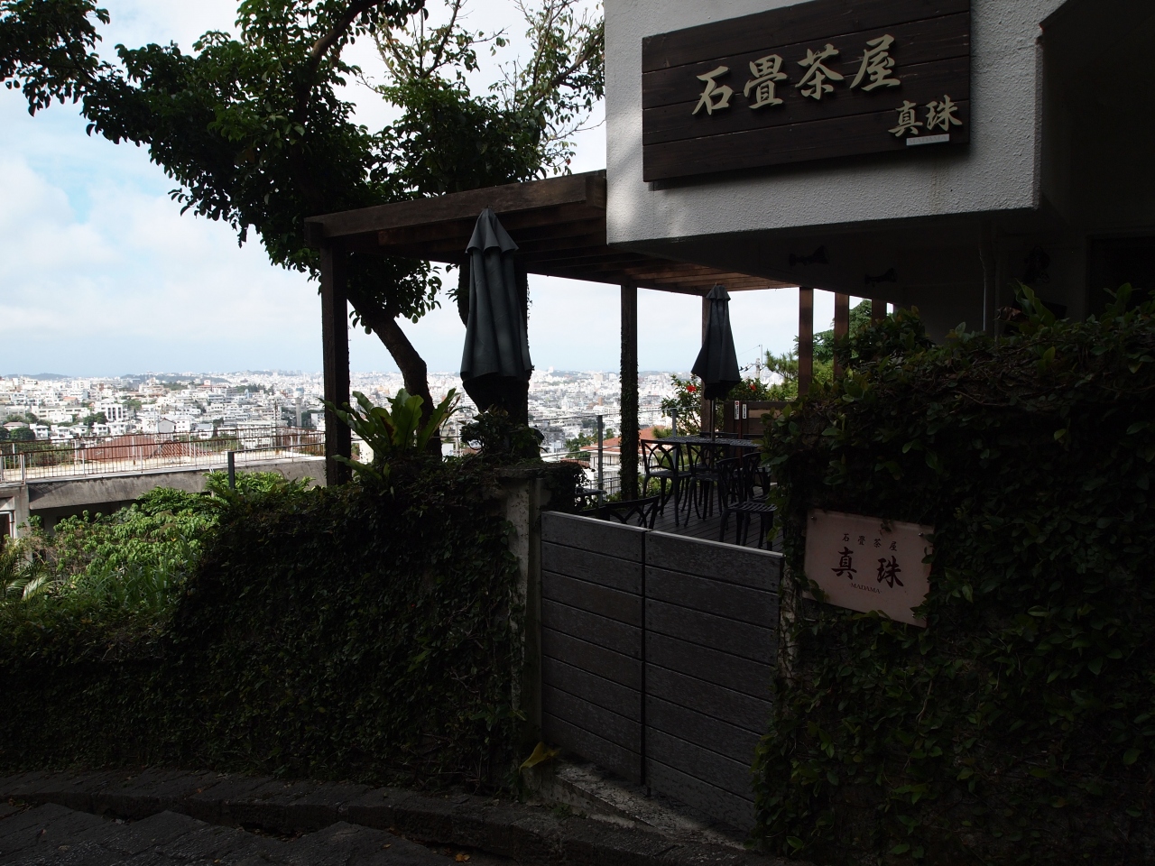 石畳茶屋真珠は首里城の南側の坂を下りていく、