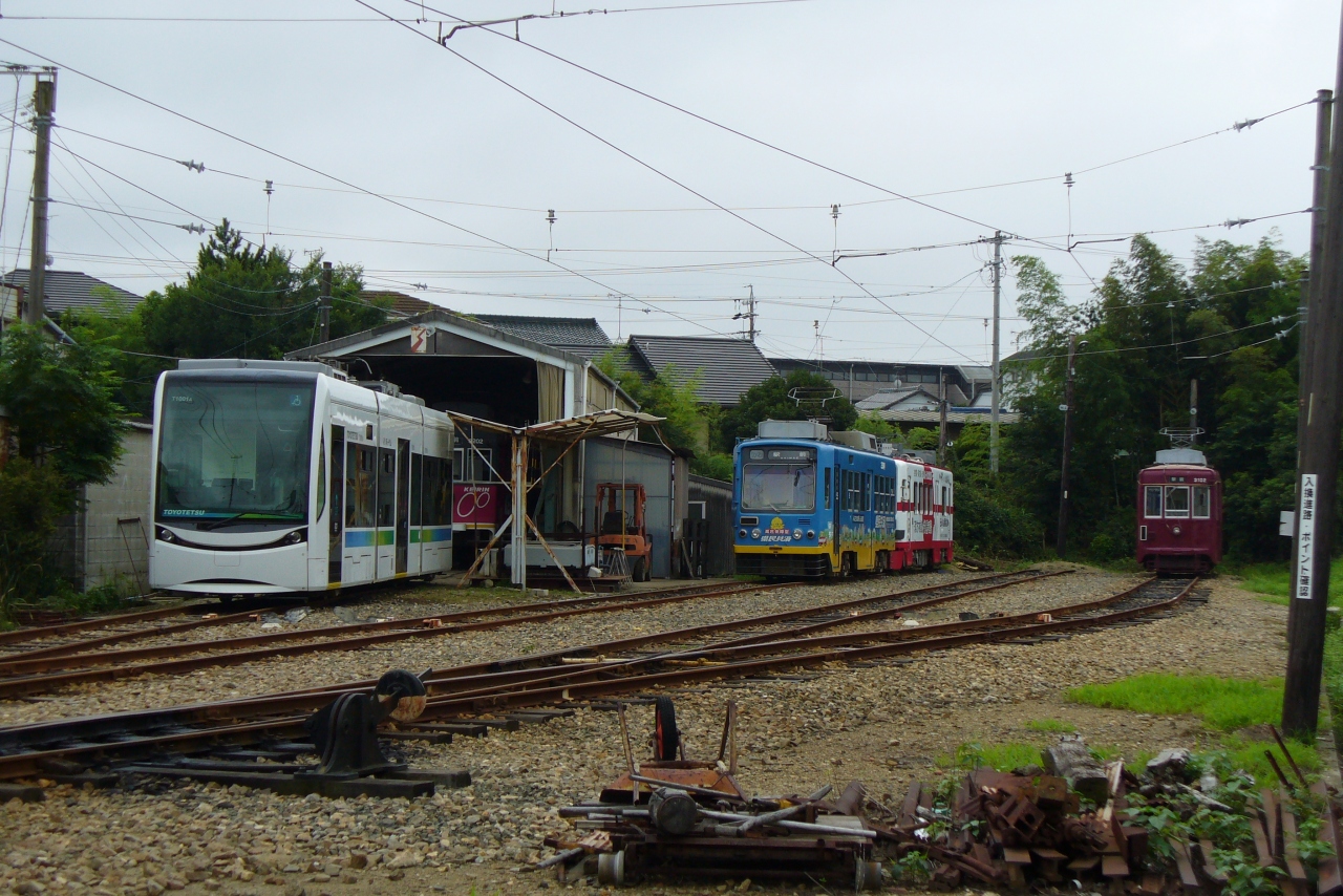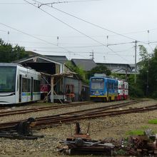 赤岩口駅は豊橋駅前から延びる路面電車の終点です。ホームは1面1線。付近には路線バスと路面電車共用の待合所があります。周辺は住宅地が広がります。駅の近くには路面電車の車庫があり、新旧様々な路面電車が留置されています。