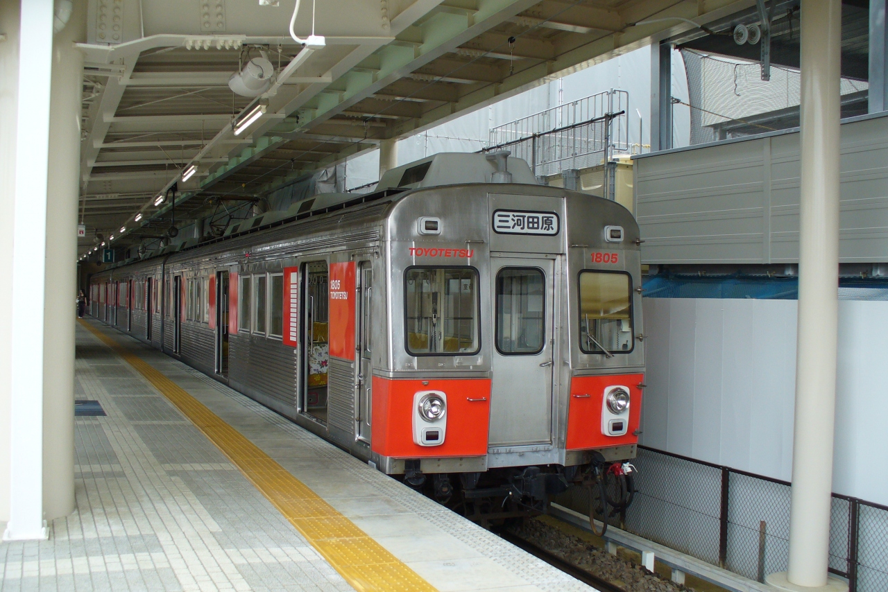 豊橋鉄道の乗り場です。JR豊橋駅から徒歩3分程度。2008年に現在の場所に移設されました。小さく新しい駅舎にはコンビニも入っており便利です。ホームは1面2線。豊橋鉄道は伊良湖方面へのアクセスで、三河田原に行く電車が走っています。