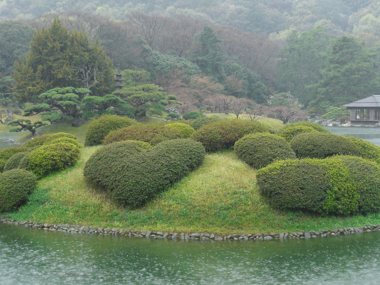 偃月橋から見える、ハート形のツツジがかわいらしかったです。
