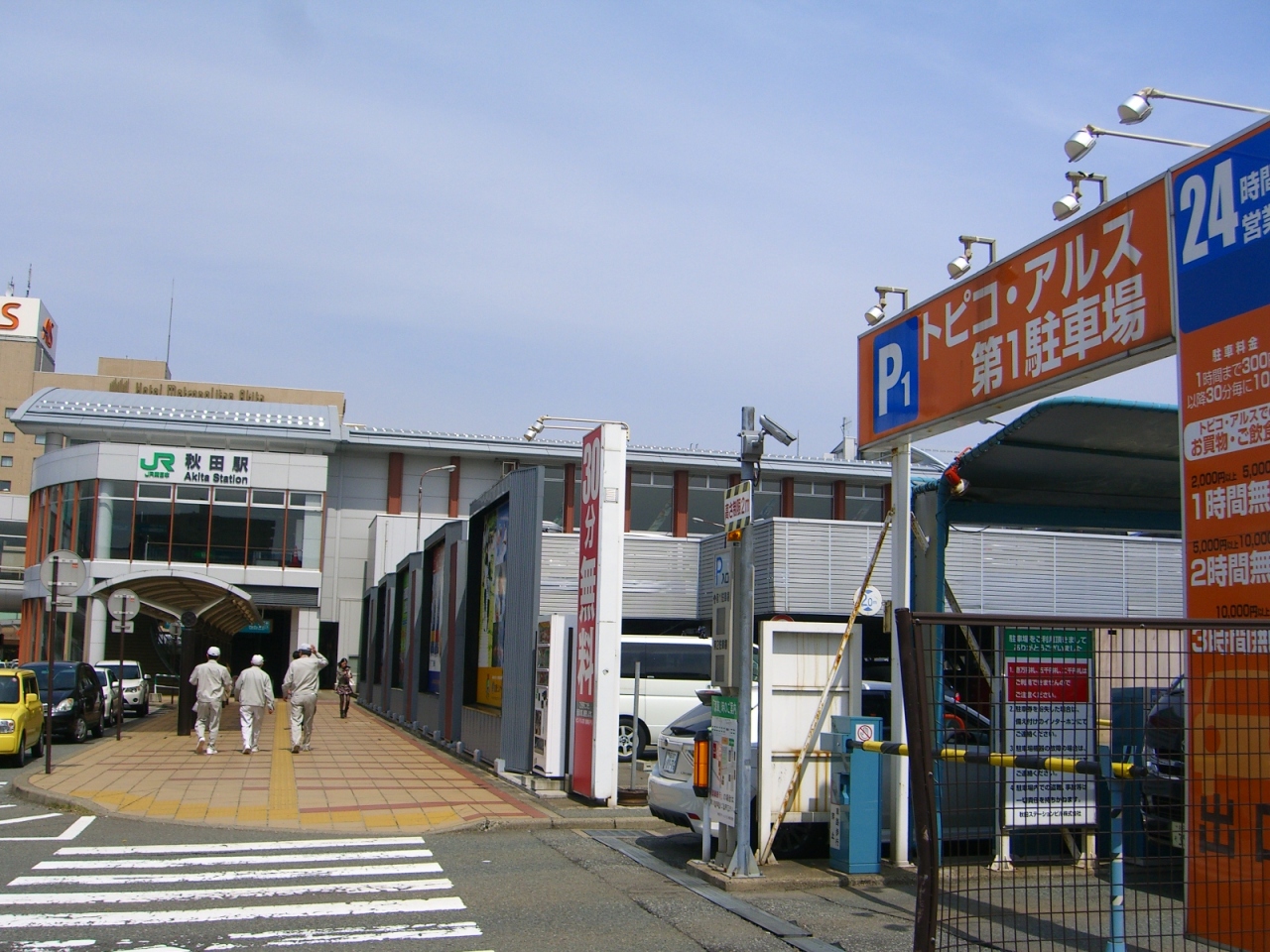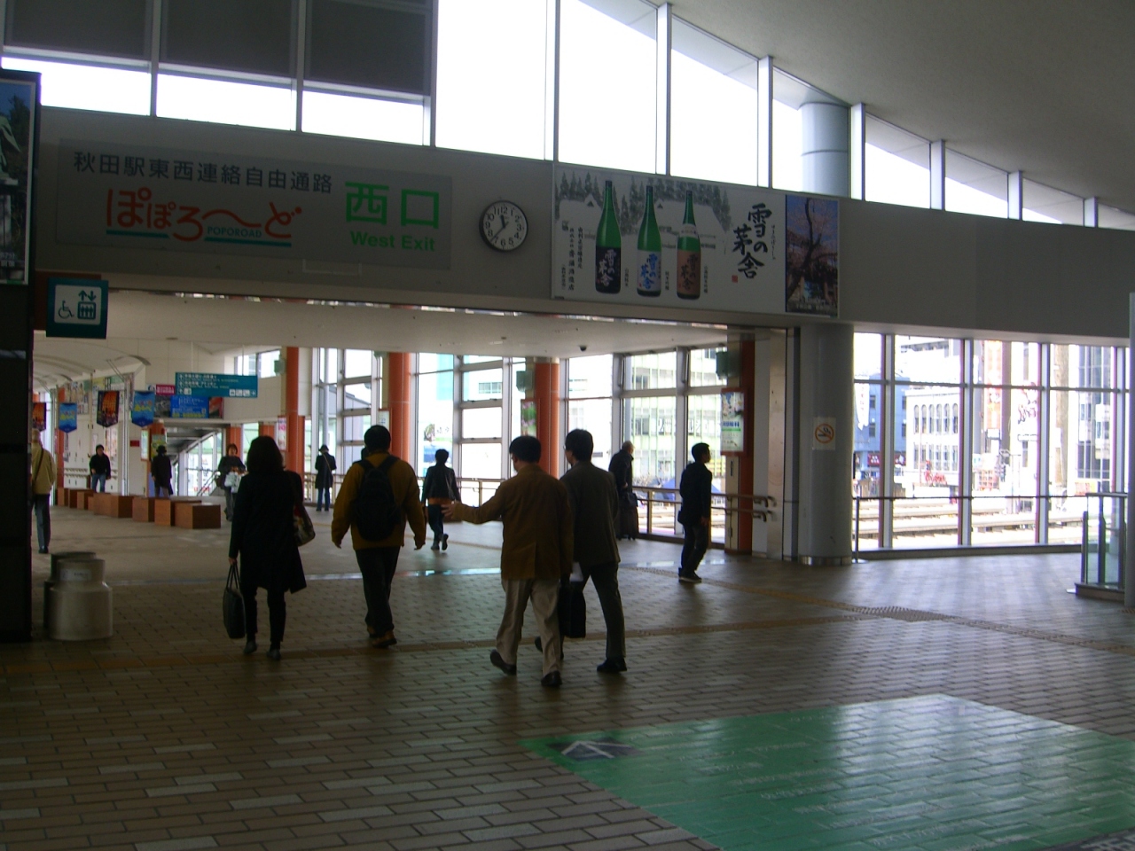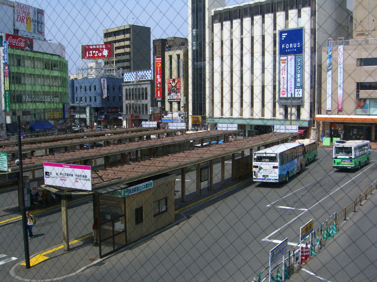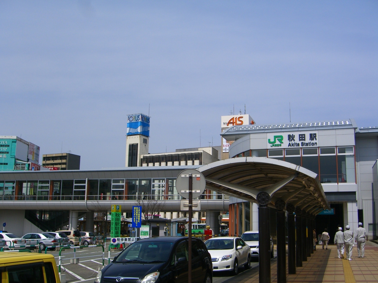 新幹線、在来線、秋田空港へのリムジンバス、首都圏、仙台への高速バスが集まる秋田の玄関口です。西口のほうが発展しておりデパート、飲食店等が多くあり路線バスのターミナルがあります。東口は高速バスのバス停があります。西口には駅に隣接して30分無料の駐車場があります。中央改札の前には観光センターがありパンフレット等入手出来ます。駅内のトピコ2Fでは秋田の土産店がひしめいています。