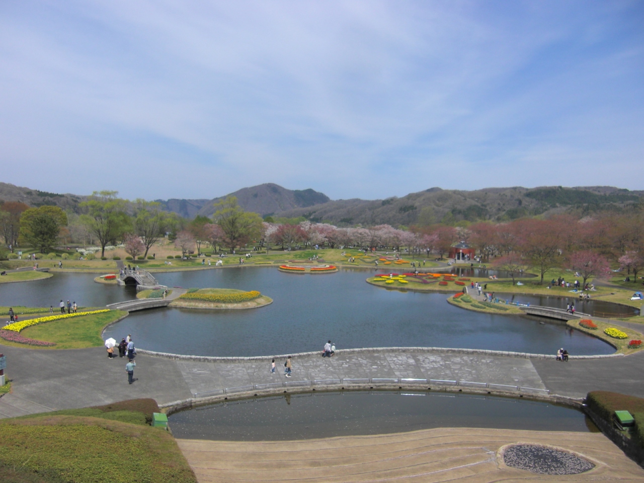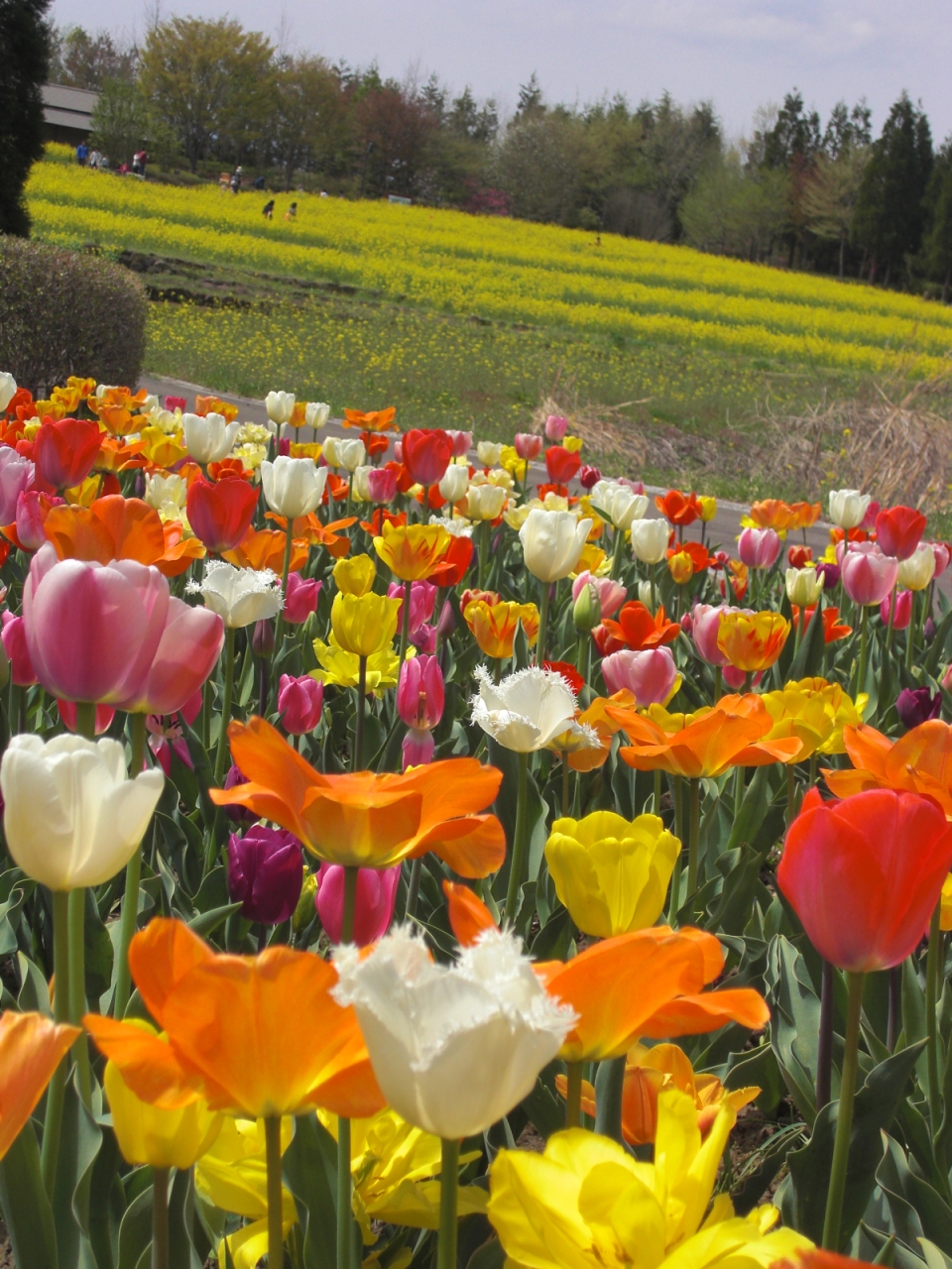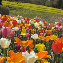 四季折々の花が植えられ、菜の花や色とりどりのチューリップが