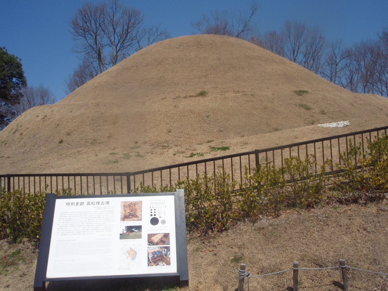 飛鳥駅から自転車で5分ほど。ちょっとした坂を上がったところにあります。周辺は公園になっていて、いかにも飛鳥、といった風景を小高い丘から眺めることができます。古墳自体は想像していたよりずっと小さい。今は埋め戻されているのでおわん型の小山があるのみです。