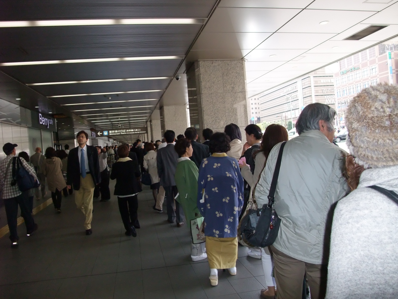 駅に着いたら花見客がすでにたくさんおり、タクシーの待ち時間20分!