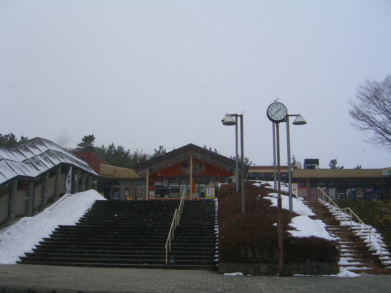 駐車場を降りて階段を数十段登るとテントがいくつかあり、物産や軽食等を販売しています。サービスエリアの建物は広くスナックコーナー、ショッピングコーナーは24時間営業で、盛岡・秋田方面は100km以上24時間営業の店はないので貴重なサービスエリアです。