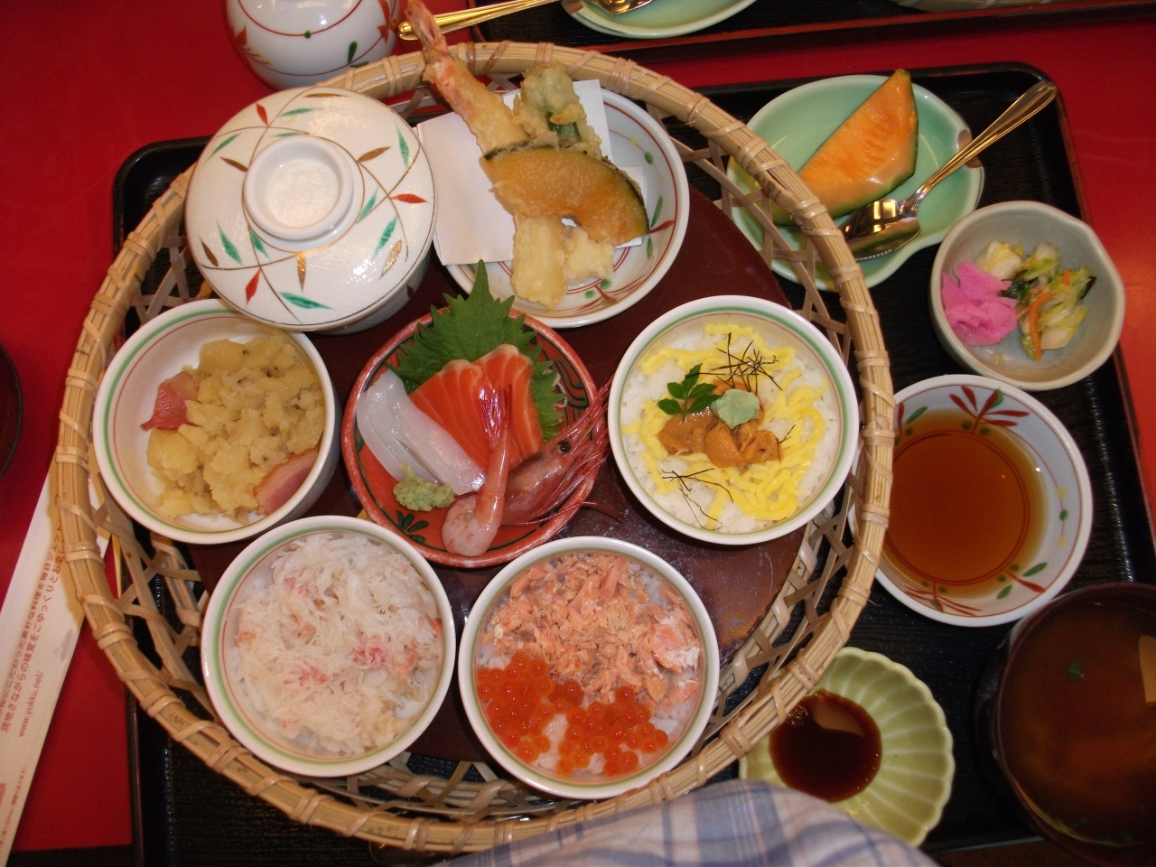 高齢の両親を連れての北海道旅行で、着いて最初の食事になりました。空港内にはたくさんのレストランがありますが、年寄りはやはり和食かなと思いこちらを選択しました。北海道の郷土料理とうたっているだけあって、郷土料理のファミレスといった感じでした。しらかば定食という鮭、いくら、かに、生うにがのったミニ丼に刺身、天ぷら、茶碗蒸などのセットメニューです。まあ、お値段はお手頃なので、お味もこんなもんかなという感じです。