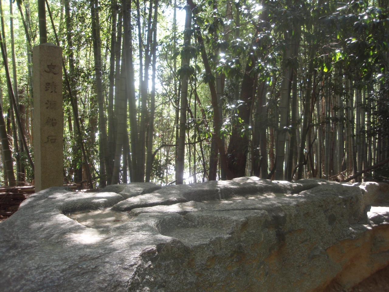 表示にそって階段を上がった竹やぶのそばにありました。初めてこの石のことを知ったのは松本清張の本だったかな。すごくミステリアスな石と聞いていたのですが、実際見ると案外普通っぽかった。酒を作ったから酒船石の名前がついたそうですが、酒でなくてもなんかの実験ができそうな不思議な形です。