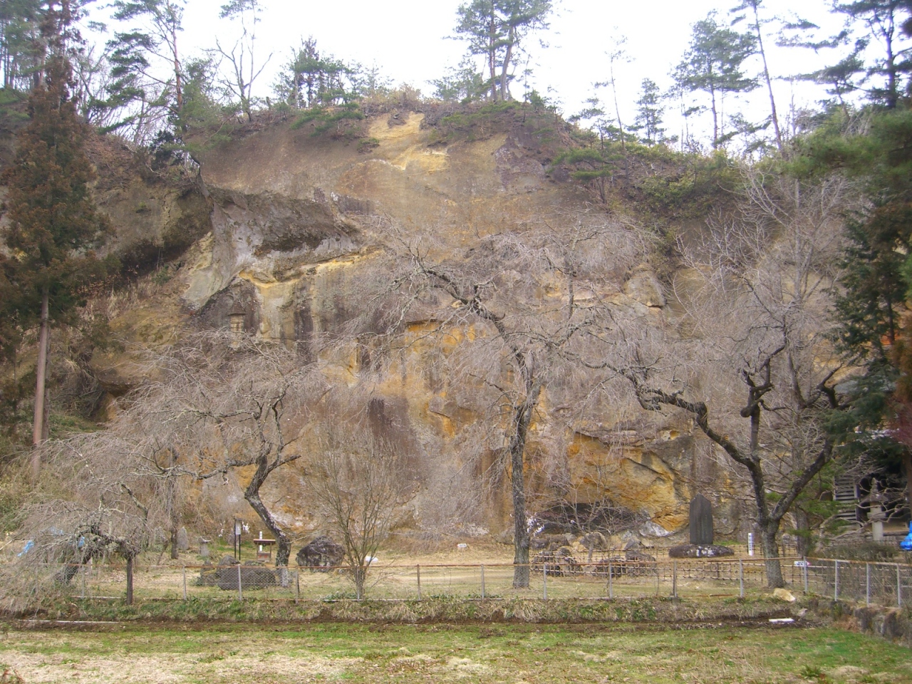 崖の彫って作ったような達谷窟は目を見張ります。1階部分は建てものを支える柱になっており2階が見学できます。電灯等ないので暗いですが歴史を感じます。もう一つは壁に刻まれたダイナミックな景観、顔面大仏。顔から下は地震で崩落したとのこと。流石、坂上田村麻呂が蝦夷討伐の戦勝記念として造営だけあります。
