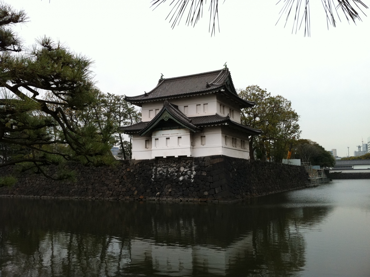 江戸城の石垣と現代の高層ビルが遠くに見える風景は、新旧入り交じった感じで非常に興味深い空間である。