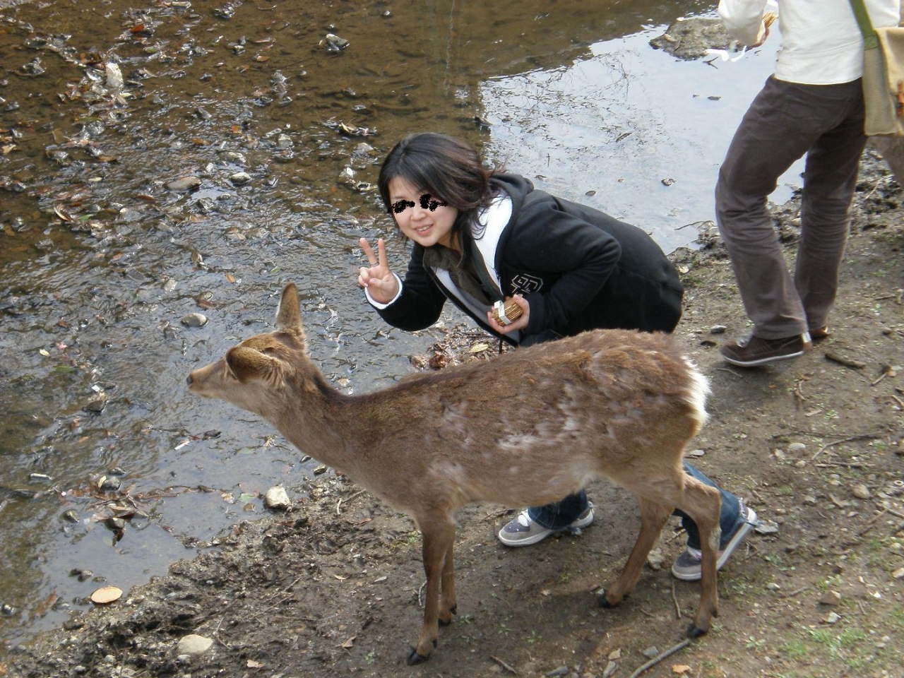 この若い鹿はシカせんべいに食いついてきます。