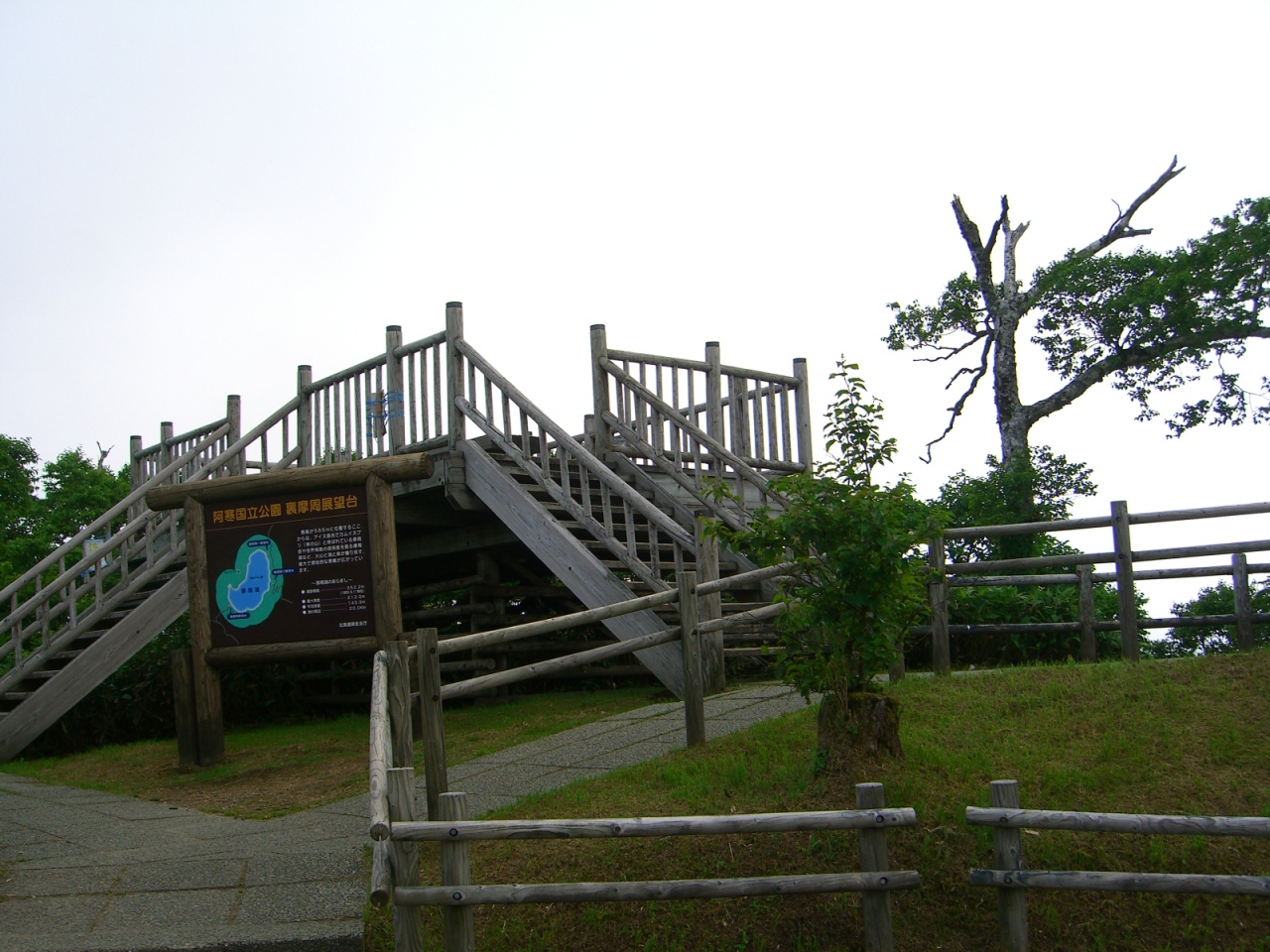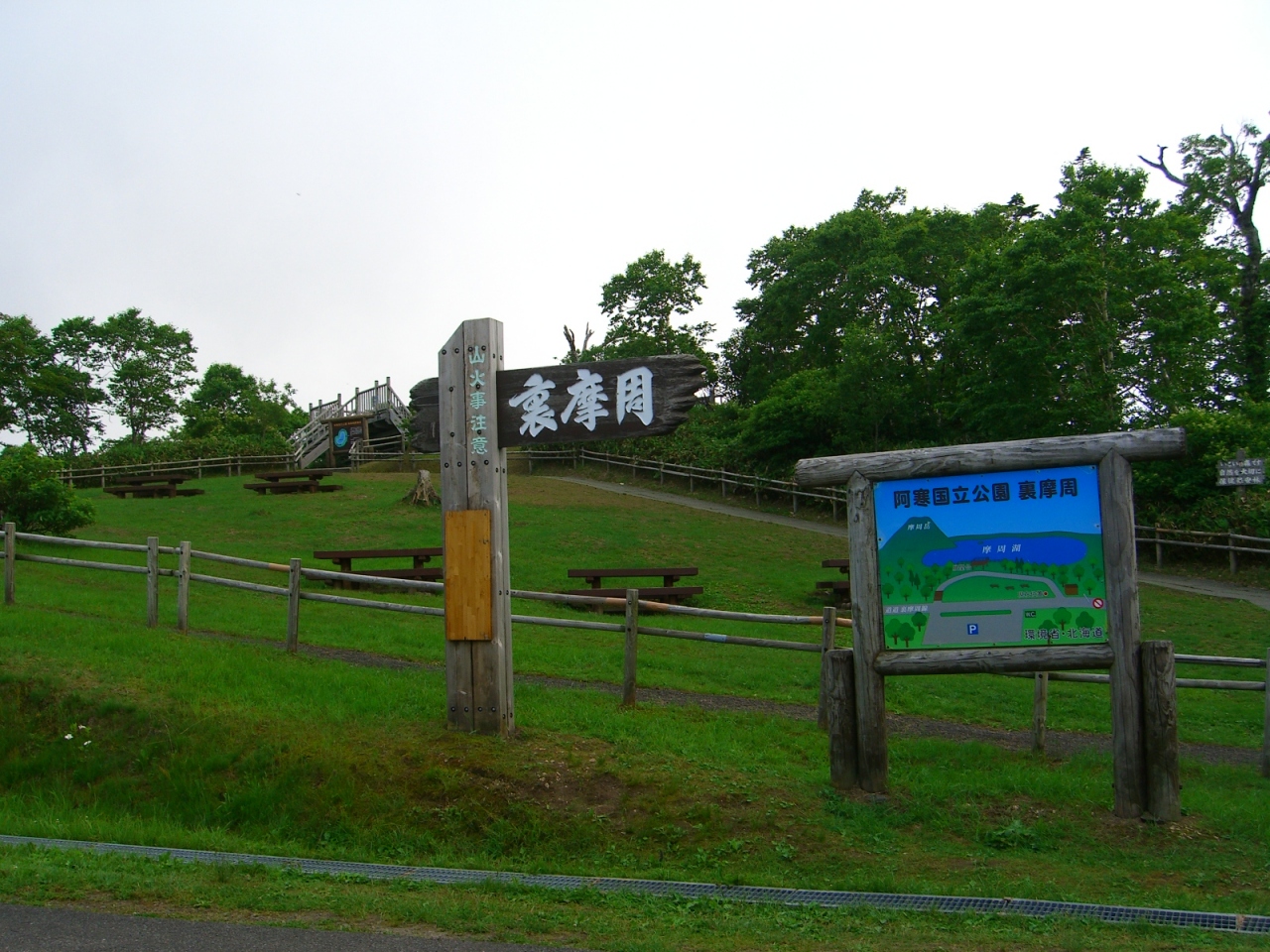弟子屈町の第1、第3展望台の反対側で「裏摩周展望台」と呼ばれ駐車場も無料で人も少なく、10回ちかく訪れていますが一度も霧の発生がないです。湖と湖に囲まれた山が一望出来ます。駐車場の前に土産屋があります。