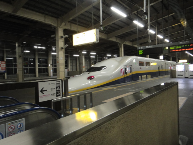 上越新幹線と金沢方面への特急「はくたか」の連絡駅になっています。在来線改札は有人改札でした(新幹線のみ自動改札)。駅構内に名産品をあつかう『雁木とおり』があり、いろいろ売っています。ロータリーへ出ましたがスキーシーズンの後は人影もまばらでした。